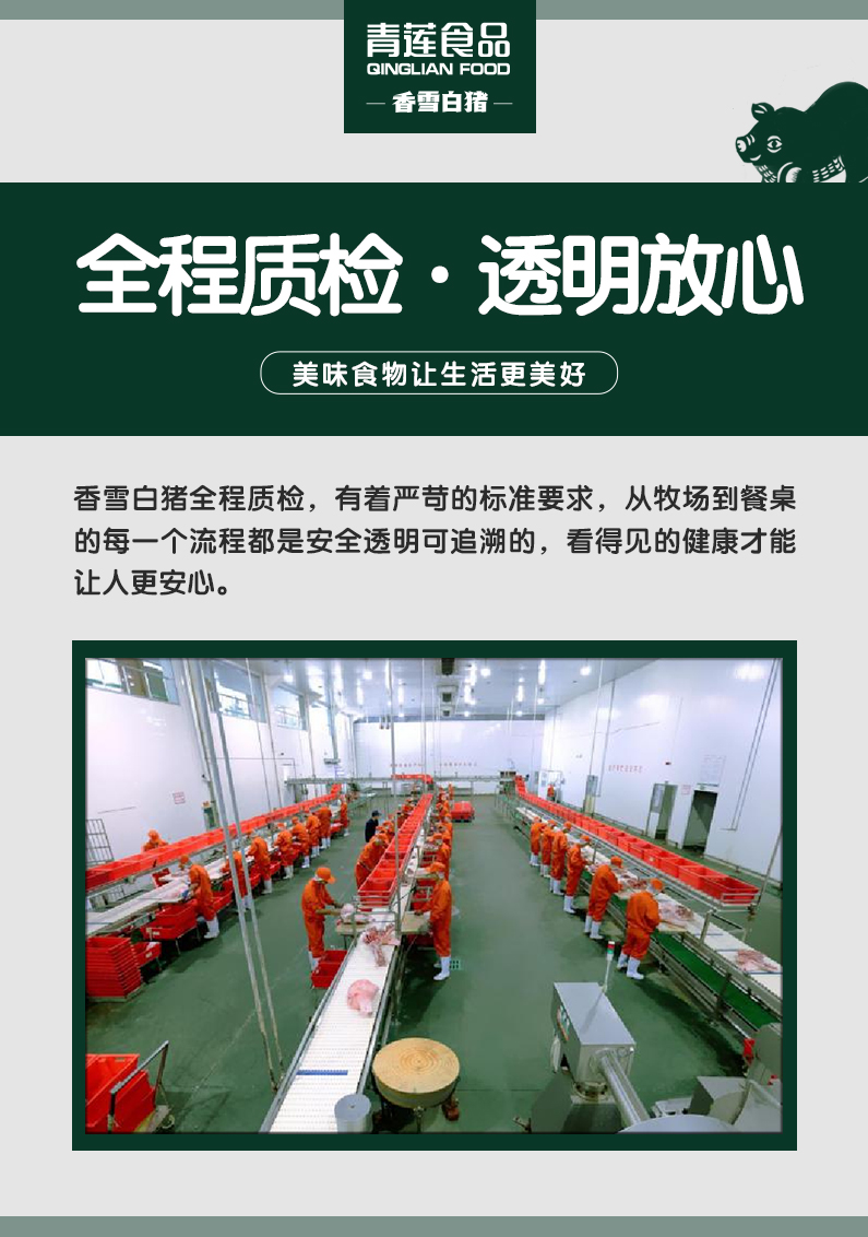 香雪白豬抗病力強,在飼養(yǎng)過程中全程無需使用任何抗生素、化學藥物、生長激素等。全程無抗飼養(yǎng)而成的香雪白豬,生鮮肉品品質(zhì)更安心。